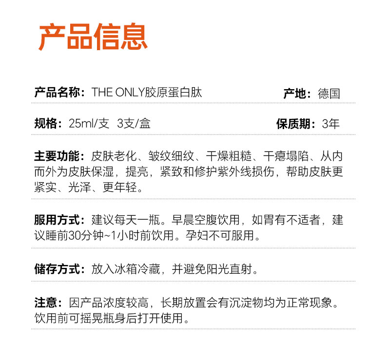 TheOnly胶原蛋白口服液 25ml*3支 德国小分子双肽美白内服液态饮 体验装